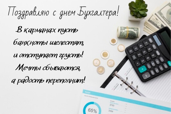 В День бухгалтера желаю, Чтоб компьютер не завис, Дебет с кредитом сходились, Ведь Вы — класс специалист!